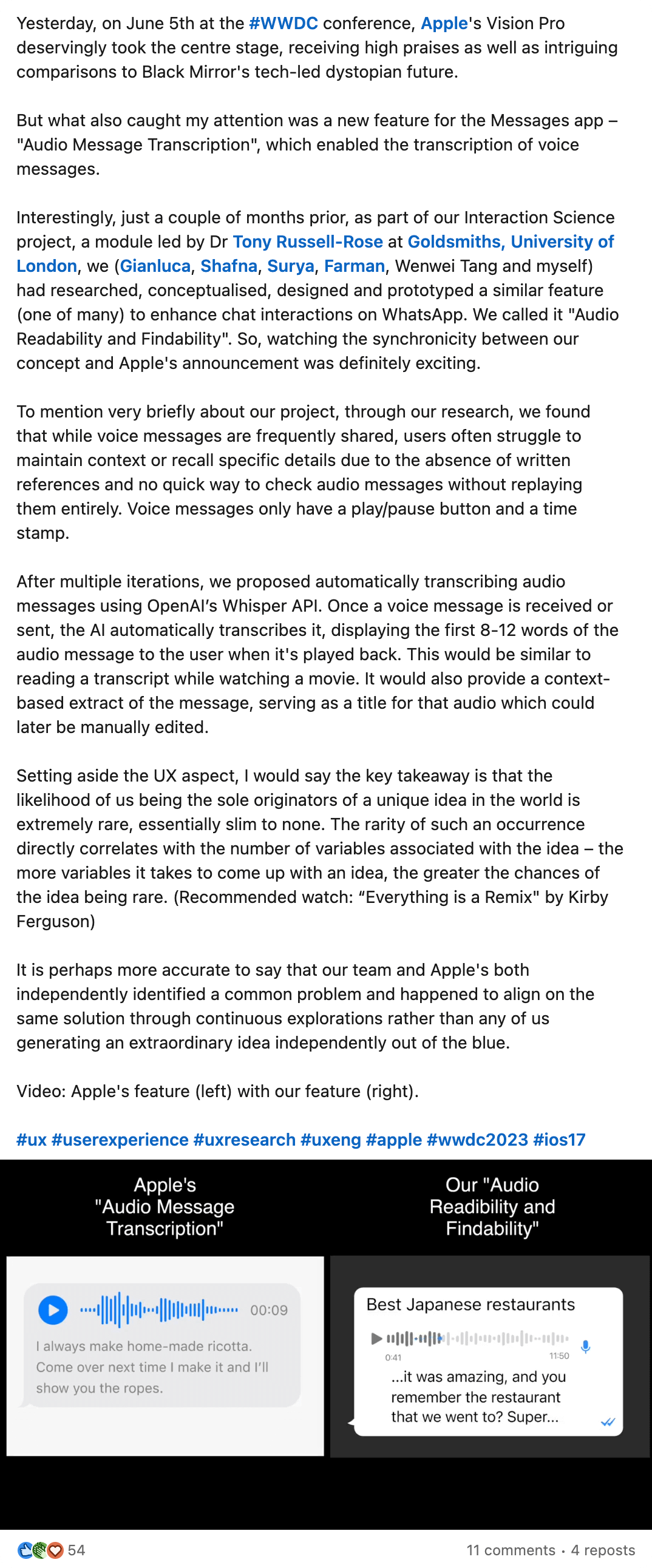 Below is a reflective post about this project that I published on LinkedIn.