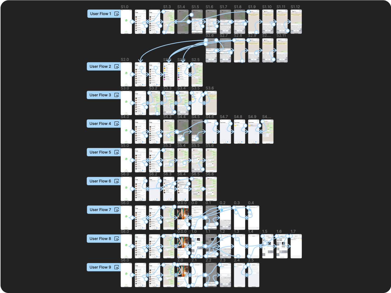 For each of the 9 user flows, we defined a specific scenario and problem, explored solutions, and developed interactive prototypes; for example, a scenario of needing to start new conversation threads led to a flow for creating hashtag threads in chats.