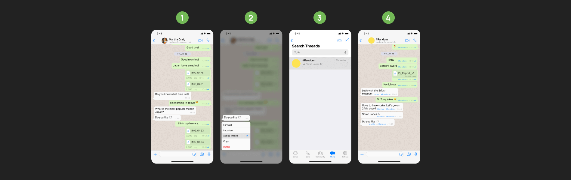 We propose “Threads”, a feature that enables users to create relevant threads by placing a hashtag “#” before their message.