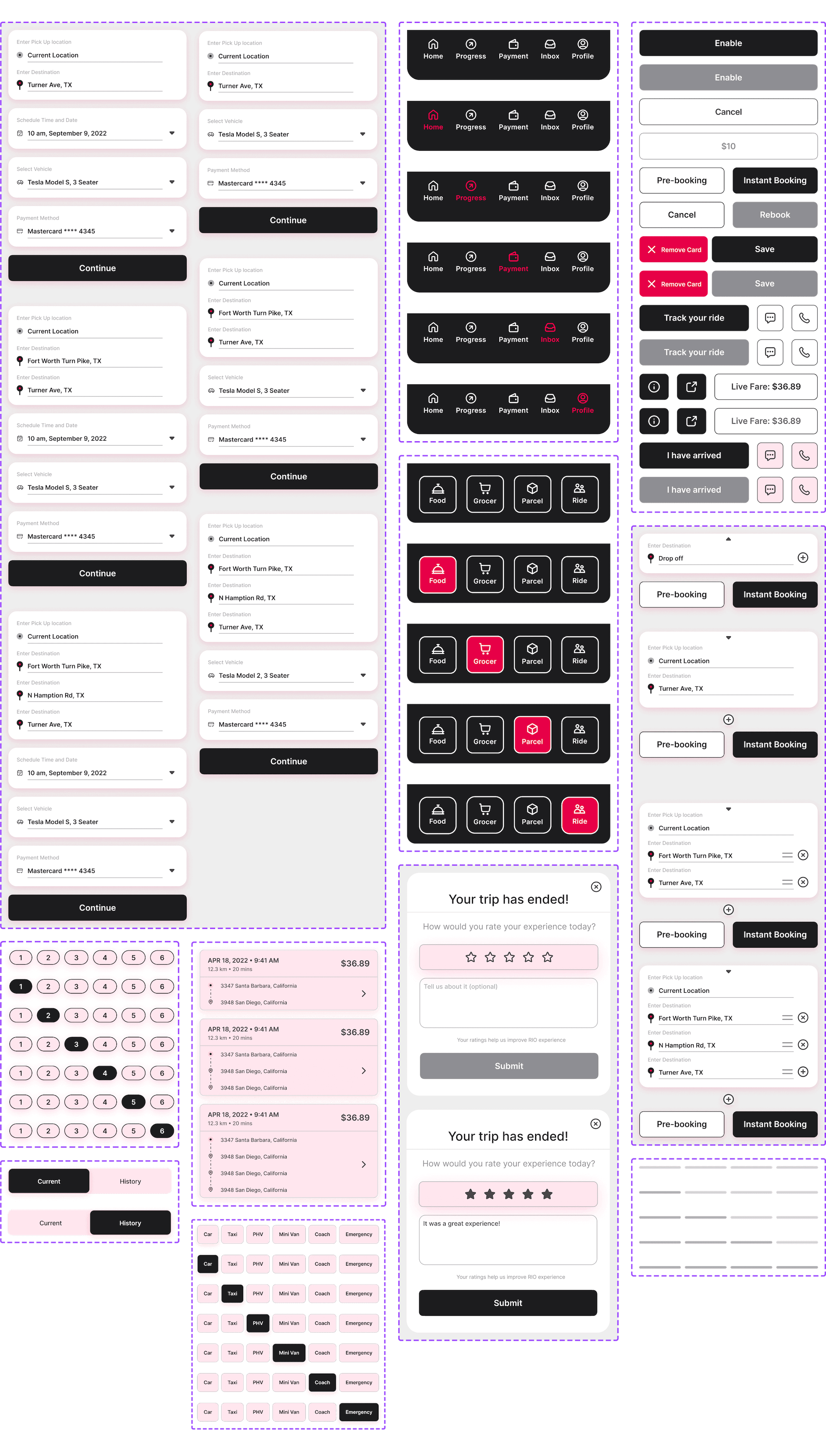 After creating the design system and components, I started working on the screen flows and designs for both the Passenger and Driver apps. Below are some of the screen flows.
